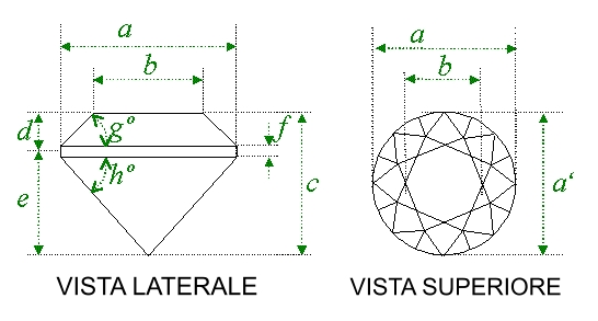 Per definizione a' e' il lato piu' lungo, e a e' il piu' corto. Per i tagli rotondi il rapporto dovrebbe essere il piu' possibile vicino ad 1 |