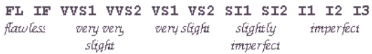 Ci sono diversi sistemi per classificare la purezza dei diamanti, quello di gran lunga piu' utilizzato e' la scala del Gemological Institute of America (G.I.A.), che spazia da 'FL' (Esente da inclusioni) ad 'I' (Imperfetto):